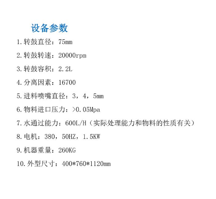 2.转鼓转速:20000rpm